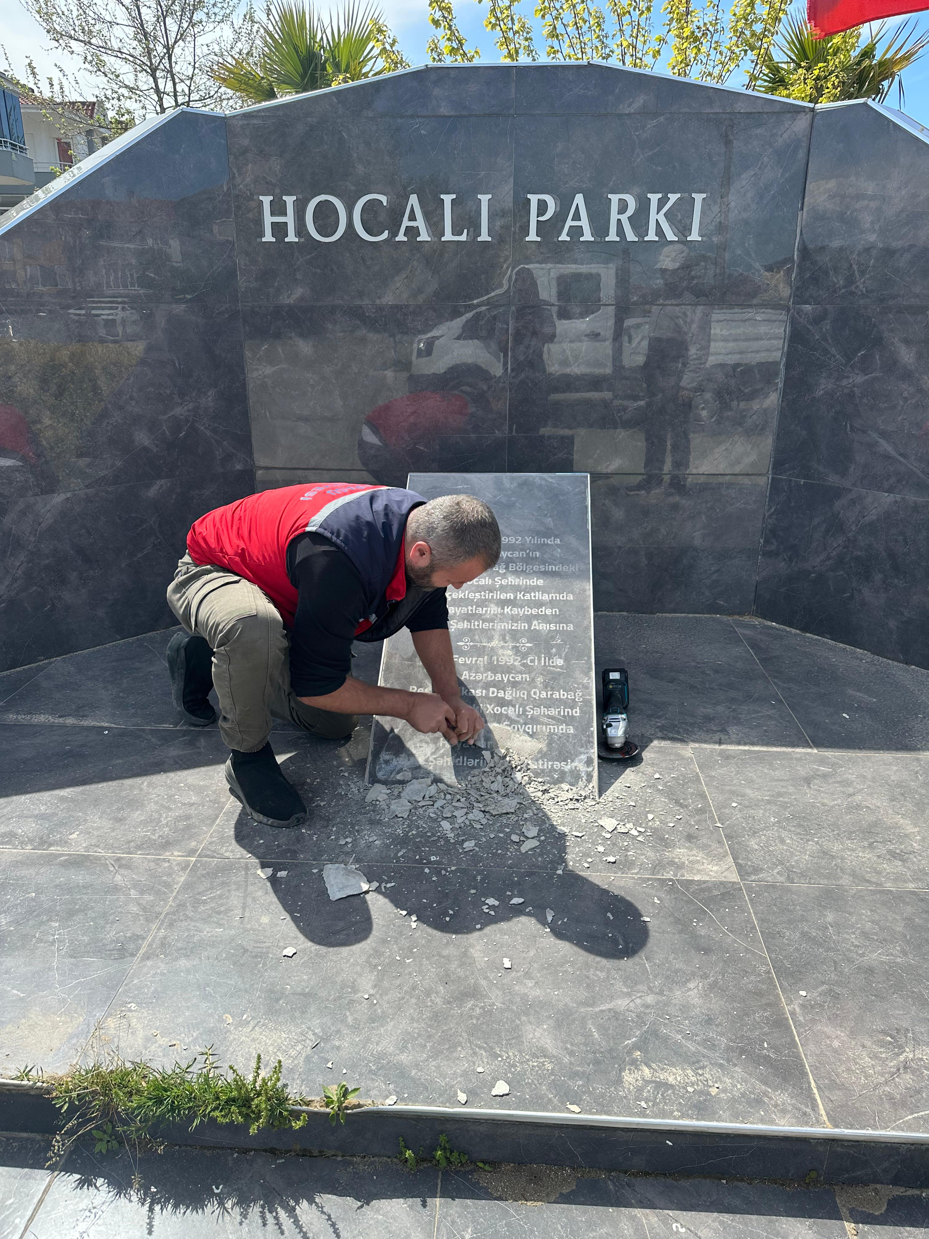 Karasu ilçesi Aziziye Mahallesi Haluk Erülgen Bulvarı'ndaki Hocalı Parkı girişinde bulunan, üzerinde '26 Şubat 1992 yılında Azerbaycan'ın Dağlık Karabağ bölgesindeki Hocalı şehrinde gerçekleştirilen katliamda hayatını kaybeden aziz şehitlerimizin anısına...' yazılı hitabenin üzeri kimliği belirsiz kişi ve kişilerce harçla kapatıldı. İhbar sonrası parka gelen Karasu Belediyesi Zabıta ekipleri, harcı temizleyerek hitabeyi eski haline getirdi. Polis, hitabeye zarar veren kişi veya kişilerin yakalanması için çalışma başlattı.