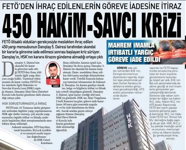 Danıştay 5. Dairesi, FETÖ ile irtibat ve iltisaklı olduğu gerekçesiyle meslekten ihraç edilen 450 ismin mesleğe dönmelerine, bir de bu isimlere tazminat ödenmesine karar vermişti.
