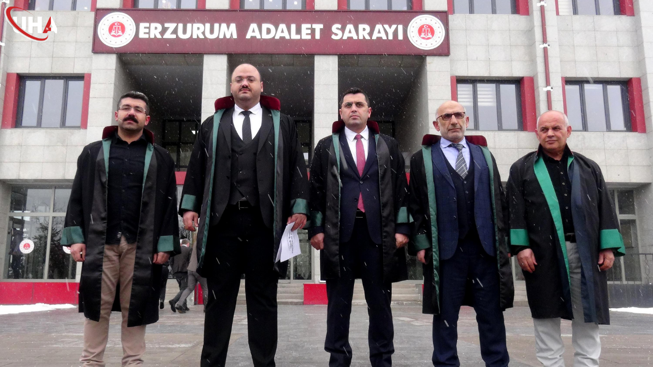 İsrail Meclisi'nde onaylanan 'idam cezası' yasasıyla ilgili Hukukçular Derneği Erzurum üyeleri Adliye Sarayı önünde toplanarak basın açıklaması yaptı. Hukukçular Derneği Erzurum Temsilcisi Avukat Muhammet Selim Karaca, başta Filistin olmak üzere bütün dünyada giderek artan şiddet eylemleri ve zulmün hukukçuları ciddi bir mesuliyet altında bıraktığını söyledi. Karaca, "Her fırsatta ve her platformda sesimizi yükseltme gayretimize rağmen İsrail terör devleti saldırılarına devam etmekte, insan hakları ihlallerini giderek artırmaktadır. Bugün burada toplanmamızın asıl sebebi ise İsrail Parlamentosu tarafından 30 Mart 2026 tarihinde kabul edilen idam cezasına dair yasal düzenlemenin insan haklarına ve uluslararası hukuka aykırılığını güçlü bir şekilde ortaya koymaktır. Her şeyden önce ifade etmek gerekir ki İsrail Parlamentosu tarafından yapılan bu yasal düzenleme bütün hukuk düzenlerinde yok hükmündedir. Birleşmiş Milletler kararlarında da teyit edildiği üzere işgalci konumda olan İsrail terör devletinin, Filistin topraklarında kendi hukuki düzenini egemen bir devlet gibi kullanması mümkün değildir. İsrail terör devleti, işgal ettiği topraklar üzerinde tam egemenlik yetkisi kullanamayacağı gibi; kendi hukuk düzenini ve yargı sistemini sınırsız biçimde uygulama yetkisine de sahip değildir" diye konuştu.