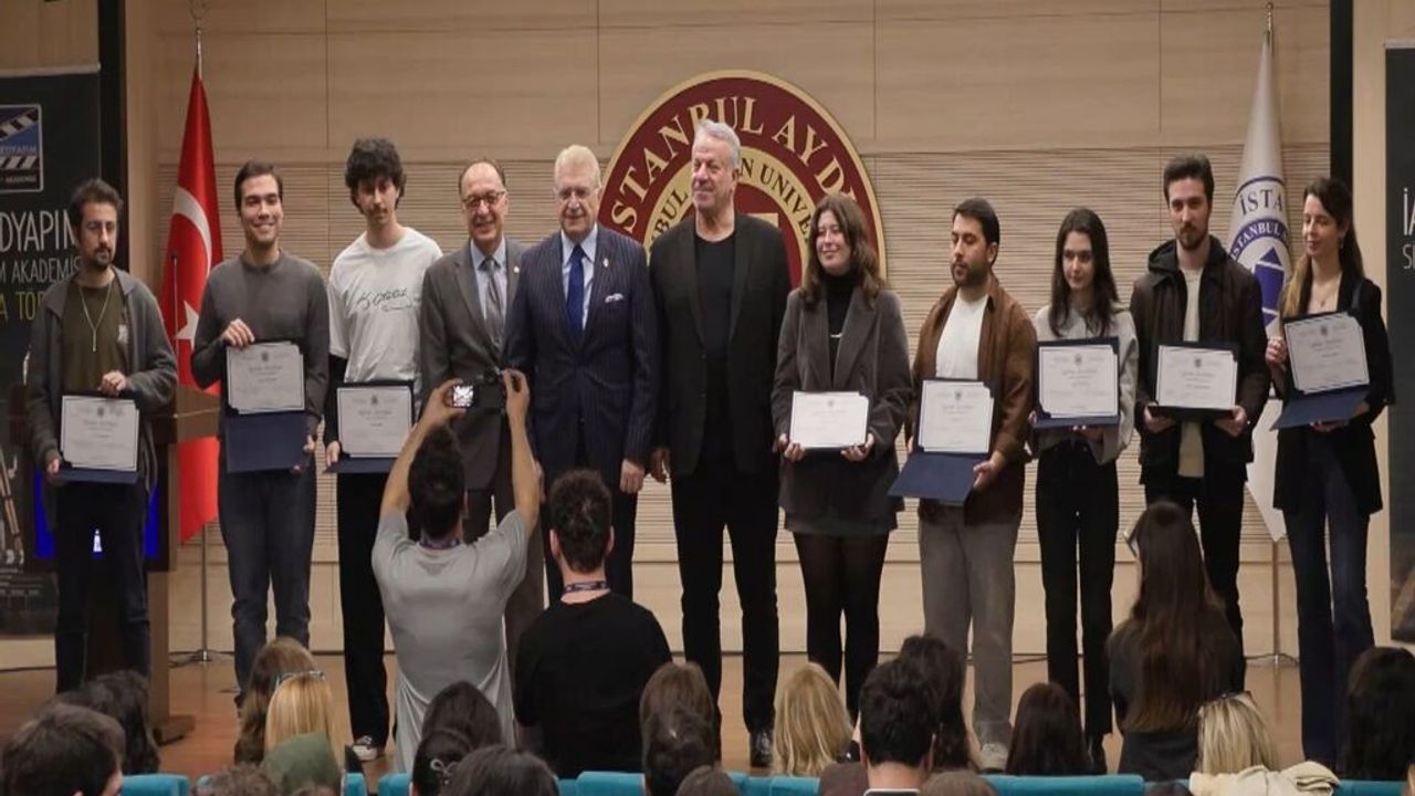 İstanbul Aydın Üniversitesi Mütevelli Heyet Başkanı Prof. Dr. Mustafa Aydın “İstanbul Aydın Üniversitesi ve Medyapım ortaklığıyla yürütülen Sinema ve Film Akademisi’nin bugün 5. mezuniyet törenini gerçekleştirdik. 2021 yılında hayata geçirdiğimiz bu programa şu ana kadar yaklaşık 600 öğrenci başvurdu ve mezunlarımızın tamamı şu anda sektörde çalışıyor. Sadece ulusal sınırlar içinde değil, yurt dışındaki Türk yapımcıların setlerinde ve stüdyolarında da görev alıyorlar. Son dönemde Türk dizileri dünyada oldukça rağbet görüyor. Bunun sadece ekonomik bir boyutu yok; aynı zamanda ülkemizin tanınırlığı ve farklı ülkelerde oluşan yanlış algıların düzeltilmesi açısından da önemli bir yumuşak güç rolü var. Bu anlamda çok önemli bir çalışma yürütüyoruz. Hem gençlerimize iş bulma imkanı sağlanıyor hem de sektöre nitelikli insan kazandırılıyor” diye konuştu.