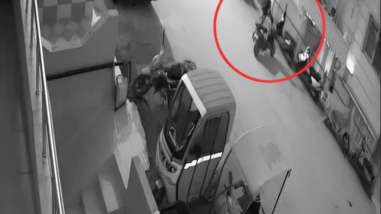 Motosiklet hırsızlığı, çevredeki bir binanın güvenlik kamerasına anbean yansıdı.