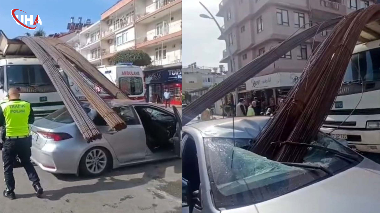 Kaza, saat 09.00 sıralarında Demokrasi Bulvarı'nda meydana geldi. Erkan Yılmaz, kavşakta dönüş yapmak isteyen Kader Süzer Duran'ın kullandığı 34 GMU 039 plakalı otomobile çarpmamak için kullandığı 07 GP 740 plakalı kamyonla ani fren yaptı. Bu sırada kamyonun kasasındaki demirler, öne doğru hareket edip otomobilin üzerine düştü. Kilolarca ağırlıktaki demir çubuklar, otomobilin tavanı ve camının birleştiği noktayı delerek içeri girdi. İhbarla olay yerine sağlık ve polis ekipleri sevk edildi. Kazada otomobilde bulunan Buse Akın ayağına demir düşmesi sonucu hafif yaralanırken, sürücü Kader Süzer Duran tedbir amaçlı hastaneye götürüldü. Diğer yandan kaza çevredeki bir iş yerinin güvenlik kamerasına yansıdı.