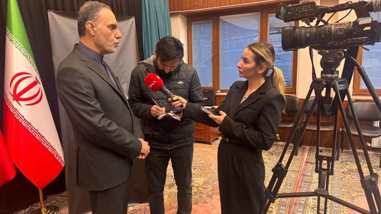 İran Büyükelçisi Mohammad Hassan Habibollahzadeh, ABD ve İsrail'in ülkesine yönelik saldırılarına ilişkin, müzakere masasının ABD tarafından terkedilmesi ile savaşın başladığını ve meşru müdafaa haklarının saklı olduğunu belirtti. Büyükelçi Habibollahzadeh, "Biz vahit ve kardeşçe yaşanan bir coğrafyadaydık. Son dönemde yaşanan bu sorunlar, İsrail tarafından bölgede yaratılan tuzaklardan oluşmaktadır. Ve umarız yakın bir zamanda da bölgemiz yine de istikrarı bulur. Yine de bizim söylemimiz aslında sulh, barış ve istikrardır. Geçtiğimiz günlerde de bizim cumhurbaşkanımız, bölge ülkeleri, başta Türkiye olmak üzere, Türkiye Cumhuriyeti Cumhurbaşkanı Sayın Erdoğan ile Azerbaycan Cumhurbaşkanı Sayın İlham Aliyev, Pakistan Başbakanı, Umman Kralı ve Irak Cumhurbaşkanı ile telefon görüşmesi gerçekleştirmiştir. Ve bu şekilde de komşu ülkelerimizle koordinasyon sağlanmıştır. Ve söylediğimiz gibi yakın bir zamanda da sulh, istikrar ve barış bölgede olmasını temenni etmekteyiz" dedi.