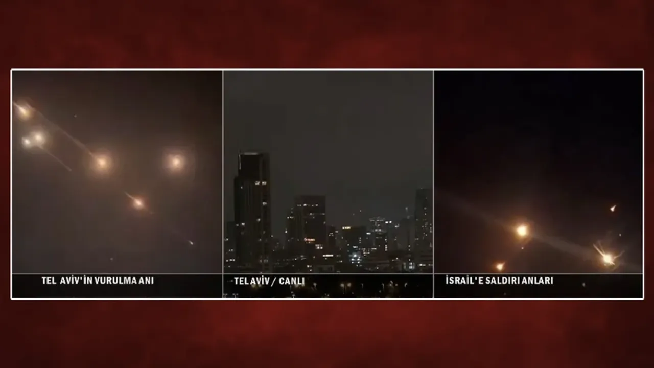 Devlet televizyonunda, canlı yayında füzelerin Tel Aviv'e isabet ettiğine dair görüntüler yayımlandı.