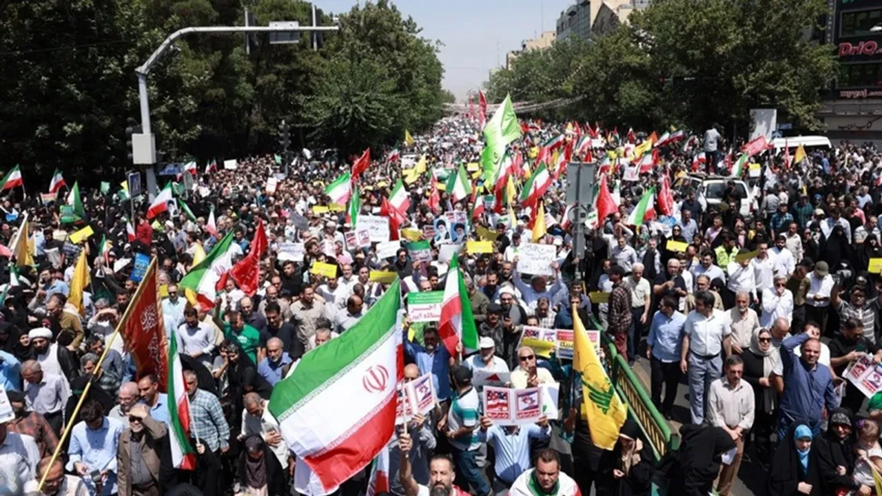 İran'da yüzbinlerce kişi, cuma namazının ardından İsrail'in ülkeye yönelik saldırılarını protesto etti.