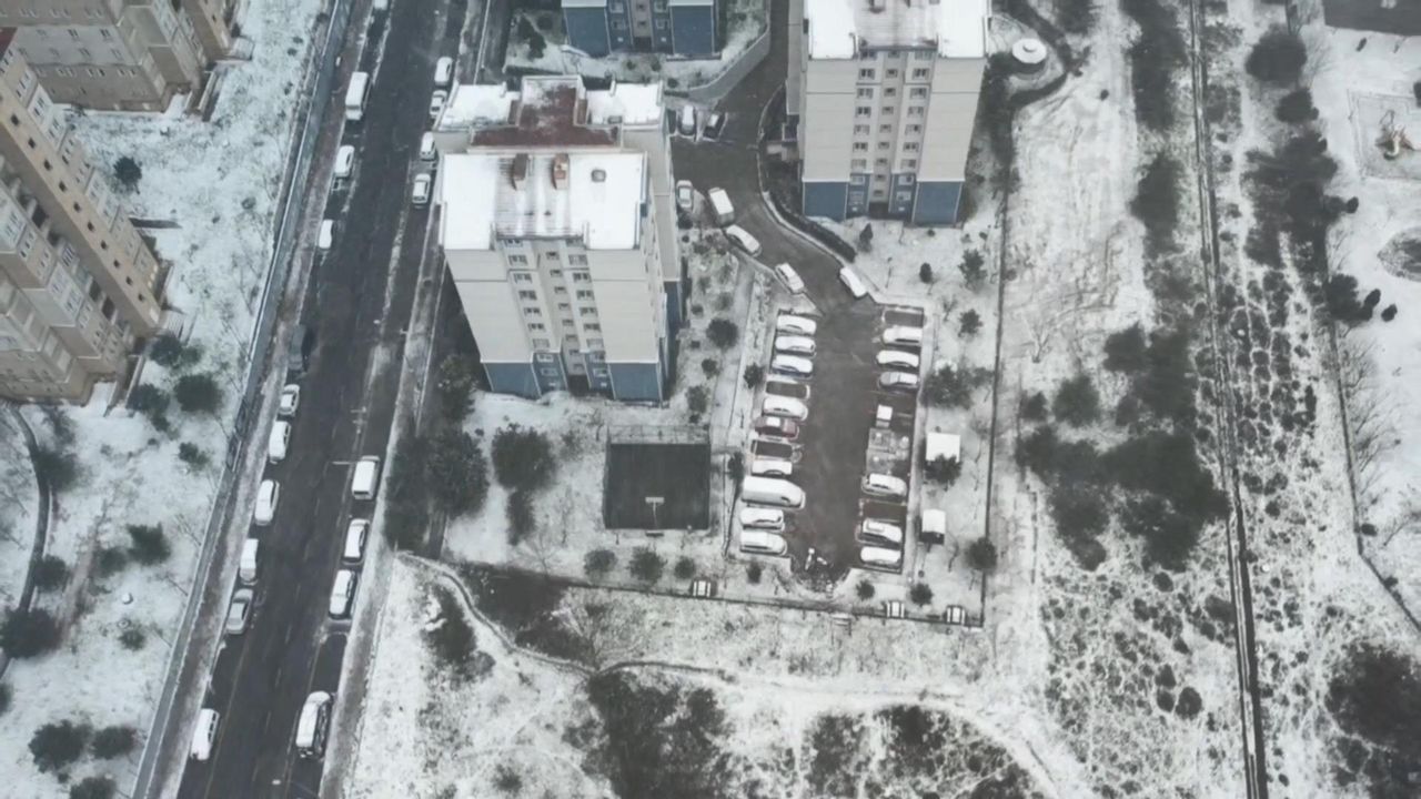 İlçede devam eden kar yağışı sonrası yollar ve binaların çatıları beyaz örtüyle kaplandı. Kar yağışının İstanbul'da aralıklarla etkili olması bekleniyor.