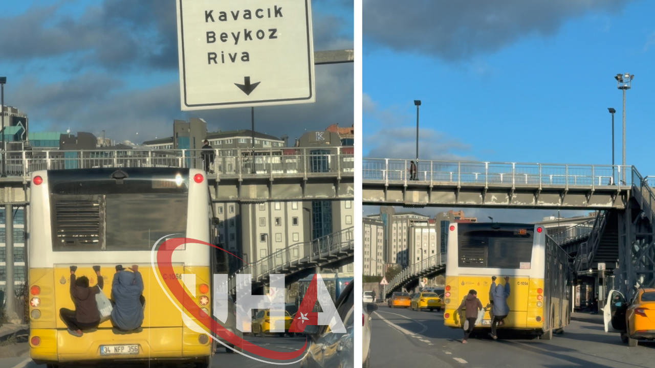 Görüntüler, dün Kavacık'ta kaydedildi. Edinilen bilgilere göre, iki çocuk seyir halindeki İETT otobüsünün arka kısmına asılarak bir süre yolda ilerledi. Çocukların, trafikte can güvenliklerini hiçe sayarak ilerlediği anlar, başka bir araç sürücüsü tarafından cep telefonu kamerasıyla görüntülendi. Otobüsün durağa yanaşmasıyla çocuklar uzaklaştı.