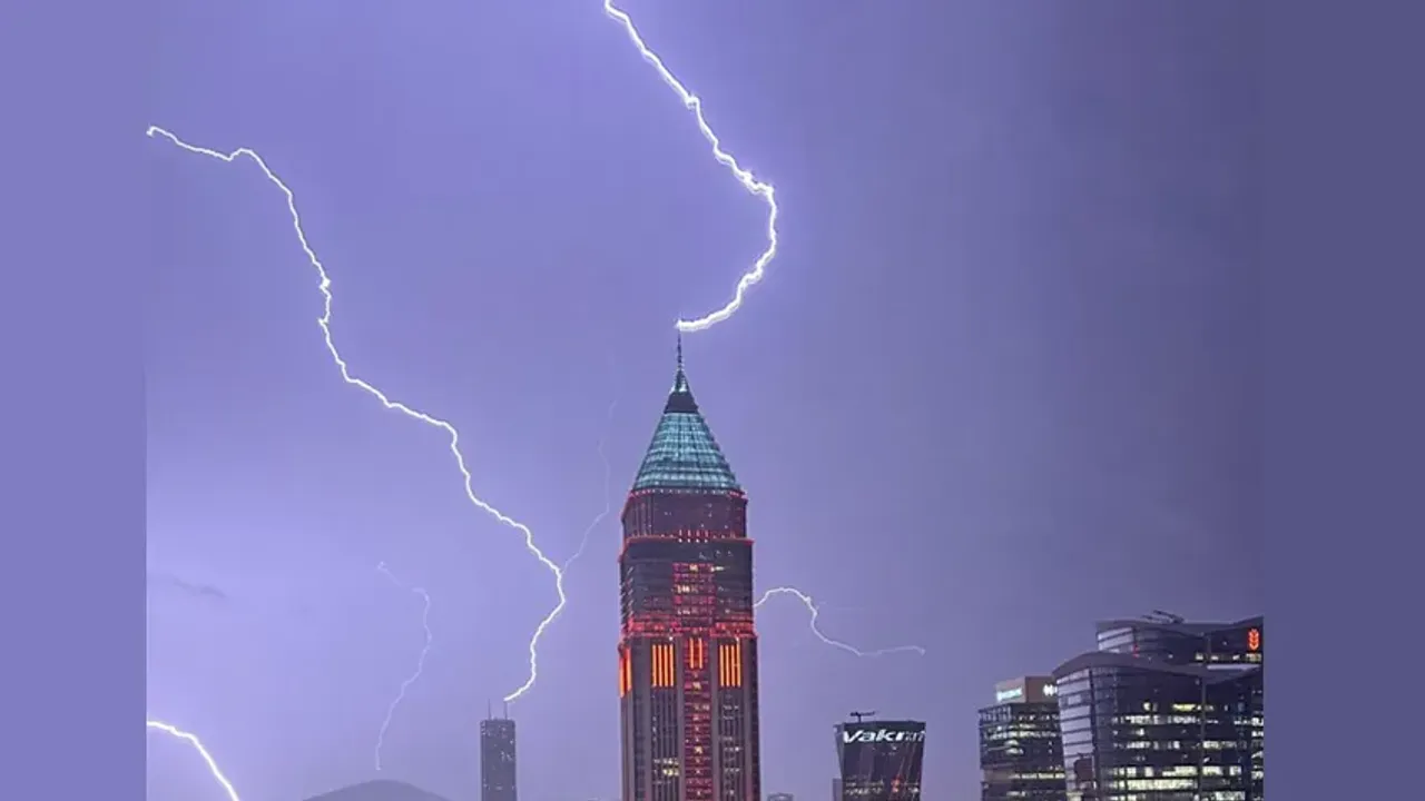 Kent genelinde akşam saatlerinde etkili olan gök gürültülü sağanak yağış hayatı olumsuz etkilerken, yüksek noktalara yıldırım düştü. Ümraniye’de bulunan İstanbul Finans Merkezi’nin üzerine yıldırım düştüğü an ise saniye saniye görüntülendi.