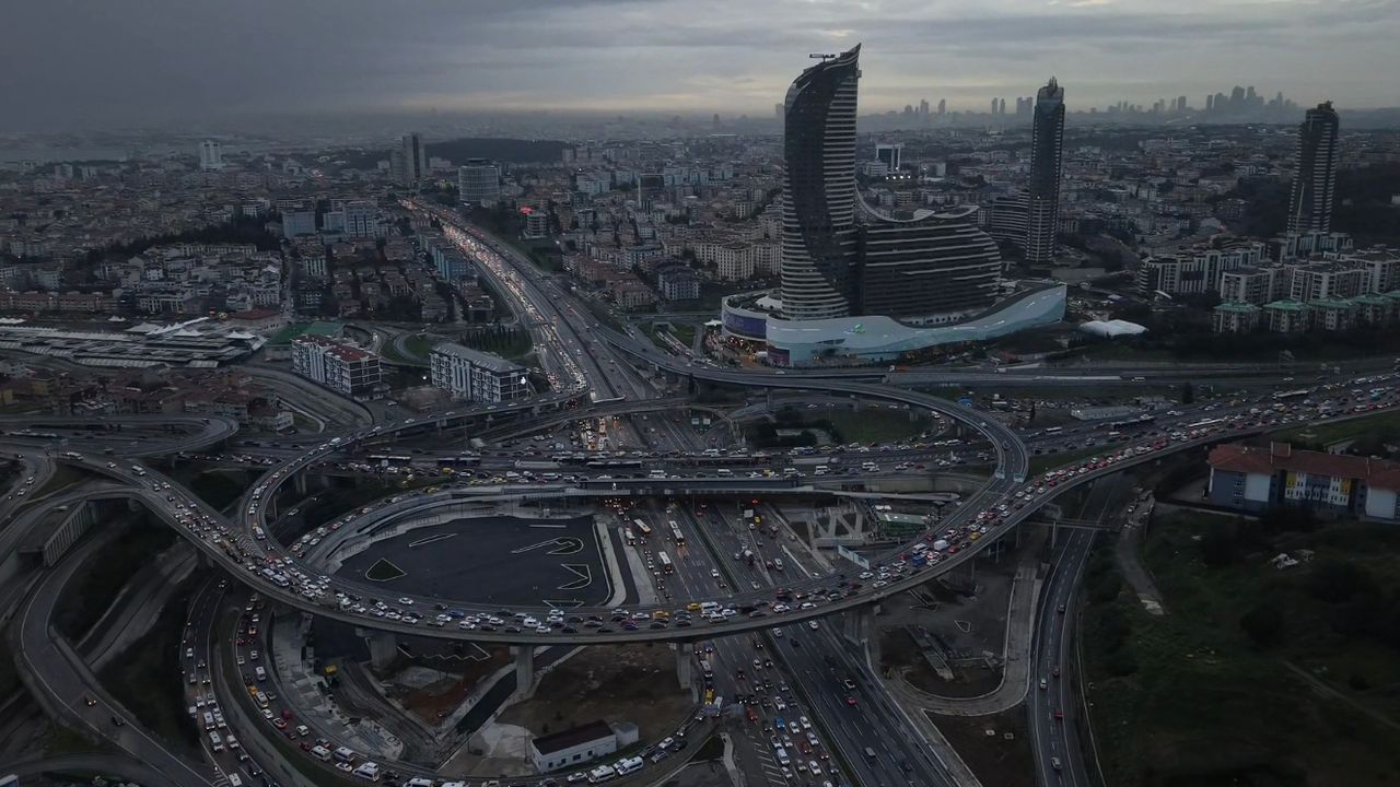 İstanbul'da akşam saatlerinde trafik yoğunluğu arttı. İBB Trafik Yoğunluğu Haritası verilerine göre saat 18.30 itibarıyla yoğunluk Avrupa Yakası'nda yüzde 90, Anadolu Yakası'nda yüzde 85, İstanbul genelinde ise yüzde 89 oldu. Kentteki ana arterlerde trafik yer yer durma noktasına geldi. D-100 Göztepe mevkiinde araçların güçlükle ilerlediği görülürken, oluşan trafik yoğunluğu dronla havadan görüntülendi.