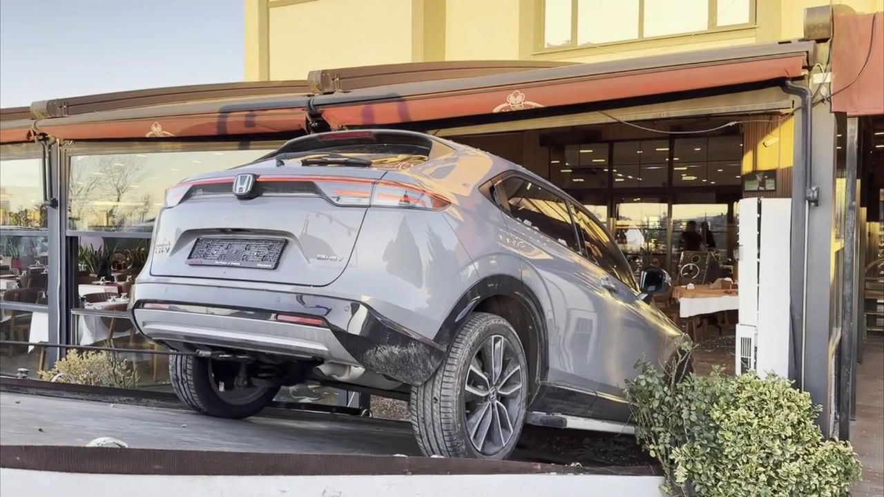 Kazada restoranda çalışan bir garson da yaralandı. Kaza anı restoranın güvenlik kamerasına yansıdı.