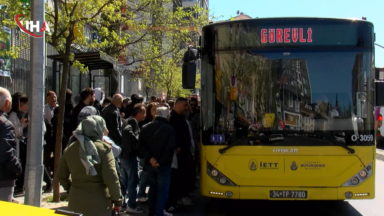 Nurtepe-Mecidiyeköy durakları arası seferler İETT otobüsleriyle ücretsiz sağlanırken, yolcuların oluşturduğu yoğunluk uzun kuyruklara neden oldu.