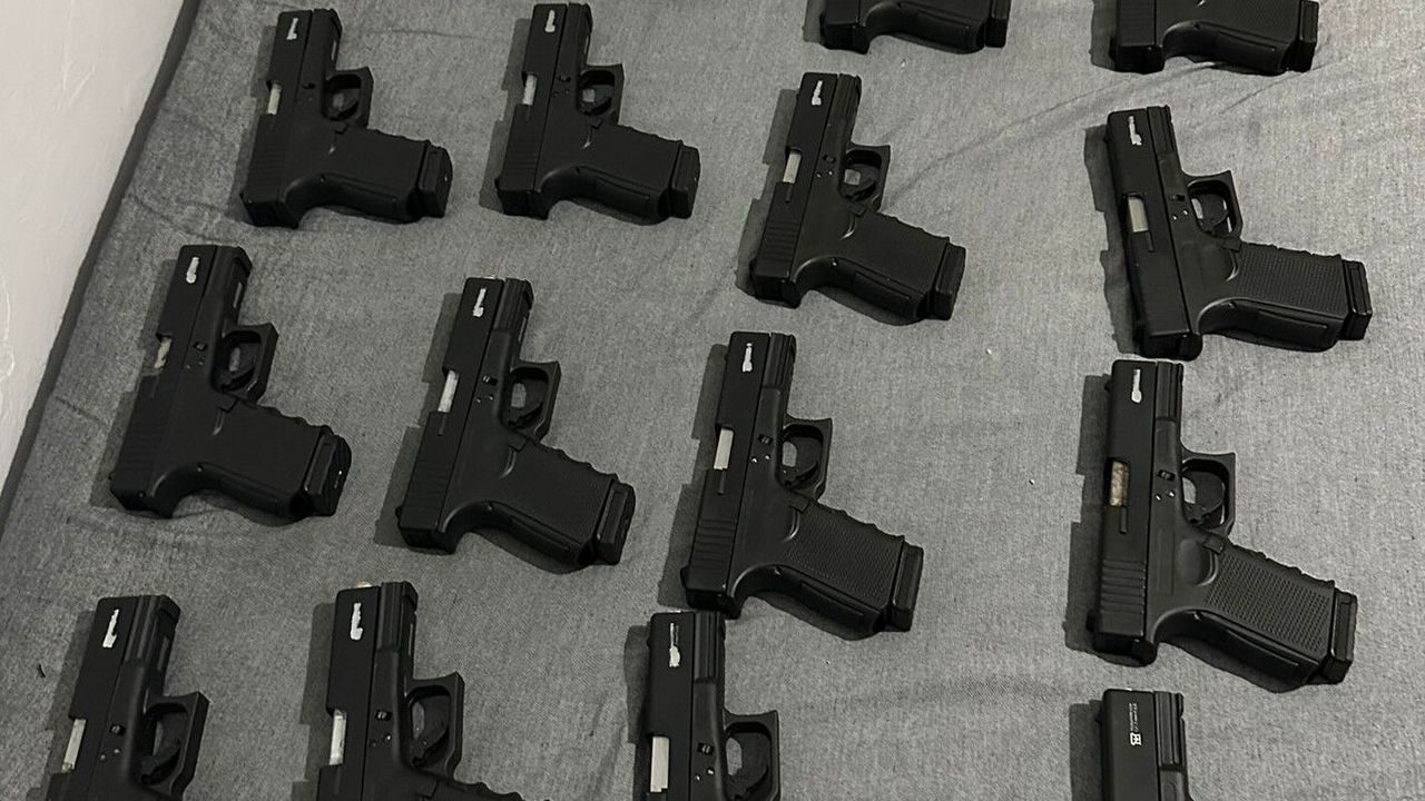Şüphelinin adresinde 13 kurusıkıdan çevirme tabanca, 5 kurusıkı tabanca, 5 namlu ve 19 şarjör ele geçirildi.