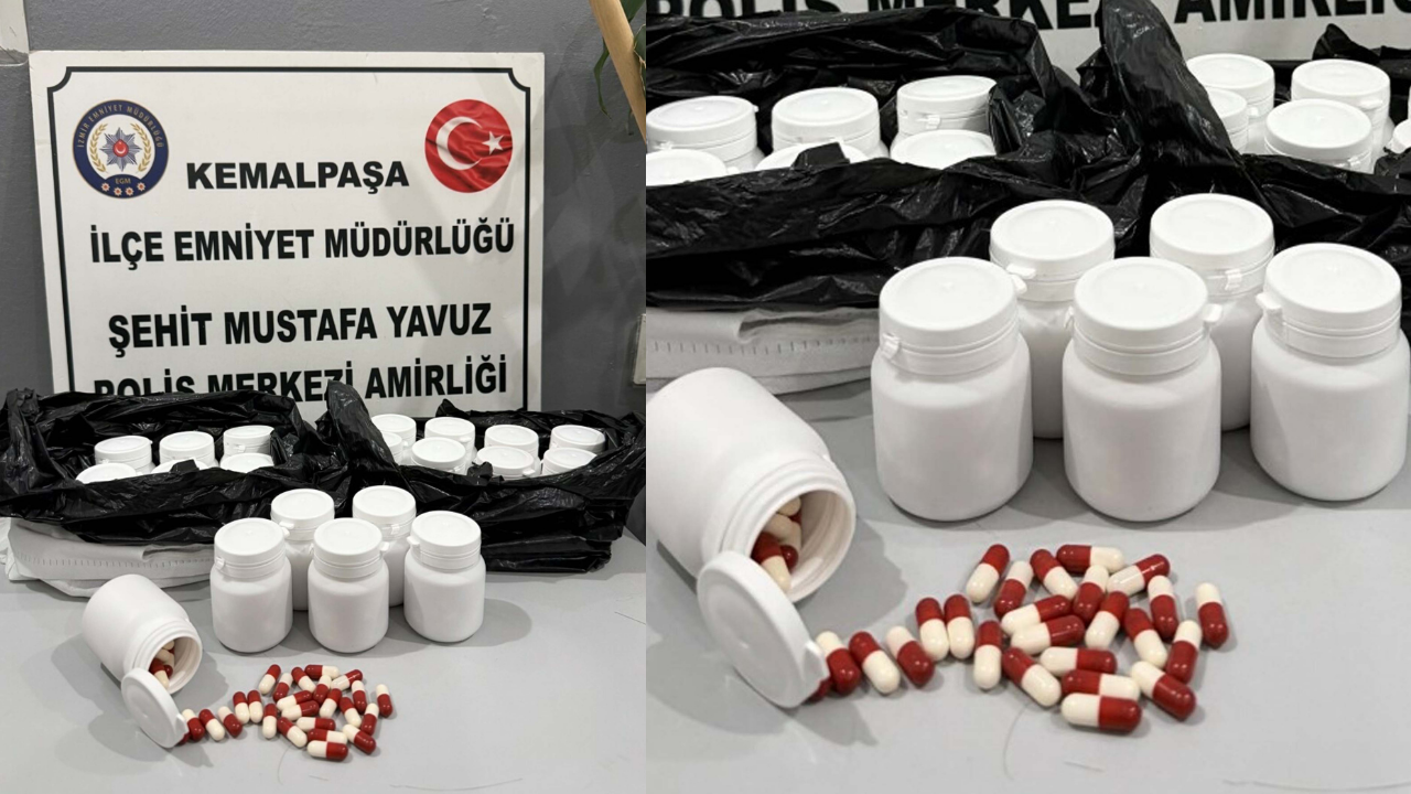 Kemalpaşa İlçe Emniyet Müdürlüğü Polis Merkezi Amirliği ekipleri, ilçe genelinde huzur ve güvenliğin sağlanmasına yönelik yürütülen uygulamalar kapsamında dün akşam saatlerinde şüphe üzerine bir otomobili durdurdu. Otomobildeki aramada, 20 kutu içerisinde toplam 1085 adet sentetik ecza hap ele geçirilirken, araçta bulunan S.B. (21) ve O.T. (19) gözaltına alındı. Şüphelilerden S.B.'nin 'uyuşturucu veya uyarıcı madde imal ve satmak', 'kullanmak için uyuşturucu madde bulundurmak' suçlarından; O.T.’nin ise motosiklet hırsızlığı suçundan kaydının bulunduğu belirlendi. Emniyetteki işlemlerinin ardından adliyeye sevk edilen 2 şüpheli, çıkarıldıkları Sulh Ceza Hakimliği'nce tutuklandı.