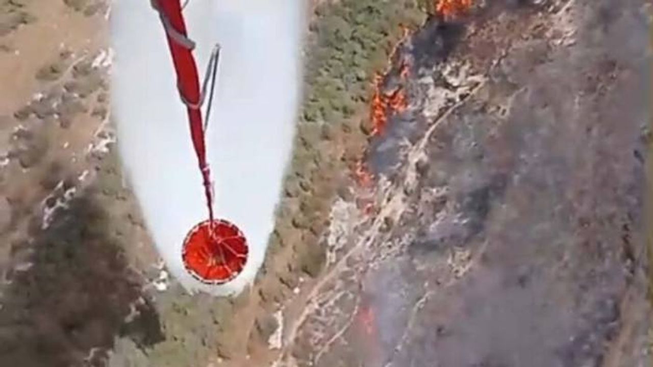 Henüz bilinmeyen sebeple çıkan yangına İzmir Orman Bölge Müdürlüğü 6 uçak, 3 helikopter ile havadan 13 arazöz, 2 su ikmal ve 2 dozerle karadan müdahale başladı.