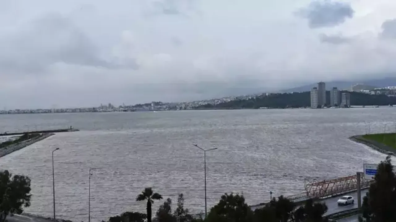 Sağanak nedeniyle derelerden denize akan çamurlu su, İzmir Körfezi'nde renk değişimine neden oldu. Körfezin bazı bölümleri kahverengiye döndü.