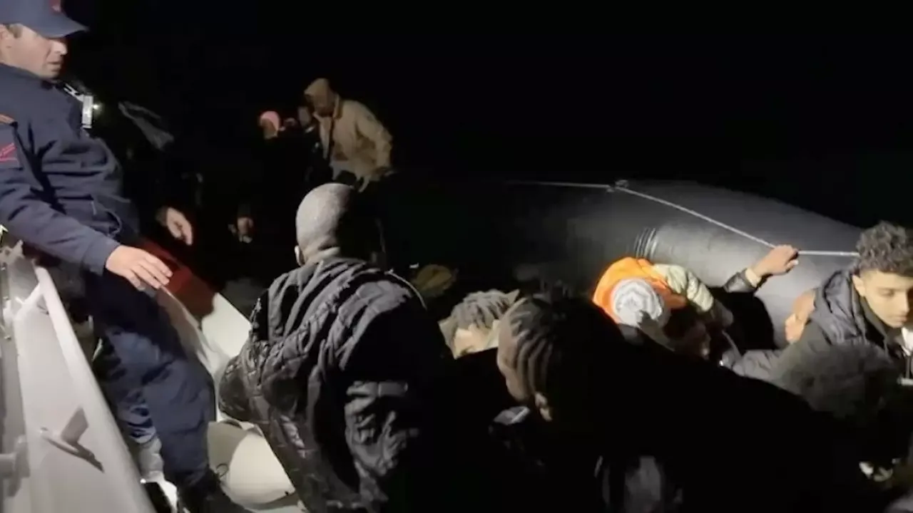 İzmir'in Foça ilçesi açıklarında, motor arızası nedeniyle sürüklenen lastik bottaki 4'ü çocuk 36 düzensiz göçmen kurtarıldı.