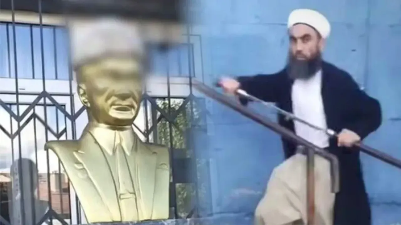 Video kaydında Atatürk'e hakaretler yağdıran şahıs daha sonra okul bahçesindeki çocuklarla konuştu. Sarıklı ve cübbeli şahıs daha sonra büste doğru yönelip saldırmaya başladı.