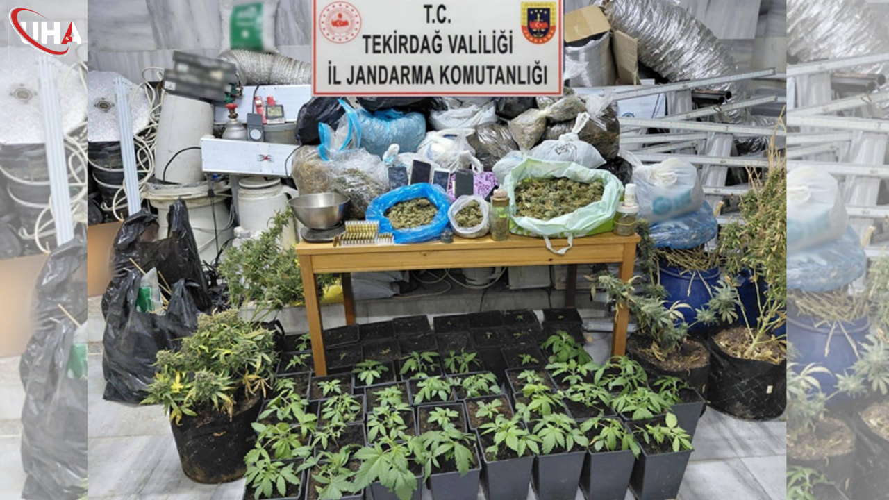 Tekirdağ İl Jandarma Komutanlığı Marmaraereğlisi İlçe Jandarma Komutanlığı ile İstihbarat Şube Müdürlüğü ekiplerinin yaptığı çalışmada, Sultanköy Mahallesi'ndeki bir evde sistem kurularak yasaklı madde üretildiği belirlendi. Ekiplerinin evde yaptığı aramada; 52 kök kenevir bitkisi, 16 kilo skunk, 9 gram amfetamin, hassas terazi, suçtan elde edildiği değerlendirilen 139 bin 850 lira 125 tabanca fişeği, 2 bıçak, esrar öğütme aparatı, sarma kağıdı, 5 gram kenevir tohumu, taşınabilir klima, 3 ısıtıcı, pH ölçer, 5 trafo, 2 vantilatör, 4 balast, 11 metre havalandırma borusu, havalandırma motoru, 2 termometre, 8 adet 6'lı led aydınlatma sistemi, 15 ısı ve ışık dağılımında kullanılan reflektör, 5 uzatma kablosu, 15 litre sıvı bitki besleyici, 12 çıkışlı elektrik dağıtım ünitesi, pH düşürücü, 3 zamanlayıcı, kürek, 2 trafo panosu, 6 havalandırma filtresi, 2 aydınlatma fanı, 55 reflektör, 2 oksijen tüpü, 7 florasan lamba, 3 el yapımı viski, 2 litre el yapımı votka, 5 cep telefon ele geçirildi. Şüpheliler M.B. ile S.G., jandarma tarafından gözaltına alındı. İncelemede, evde kaçak elektrik kullandığı tespit edildi. Adliyeye sevk edilen şüphelilerden B.M., çıkarıldığı mahkemede tutuklandı, S.G., adli kontrol şartıyla serbest bırakıldı.