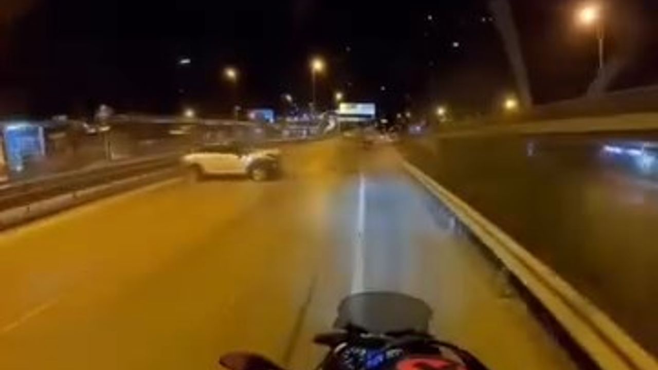 Kaza anı, aynı istikamette ilerleyen bir motosikletlinin kask kamerası tarafından saniye saniye kaydedildi. Görüntülerde çarpışma ve araçların savrulma anları yer aldı. O anları kaydeden motosikletli ise kazadan kıl payı kurtuldu.