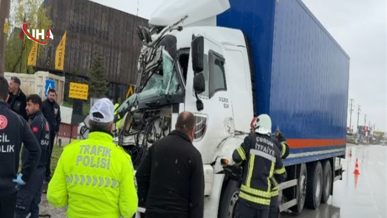 Kaza, Çorum-Ankara kara yolu Greyder Kavşağı'nda meydana geldi. G.H.’nin kullandığı 06 FP 7401 kamyon, yağış nedeniyle kayganlaşan yolda kontrolden çıkarak aynı yöne giden S.Y. idaresindeki 55 AAH 535 plakalı hafriyat kamyonuna arkadan çarptı. İhbarla olay yerine polis, itfaiye ve sağlık ekipleri sevk edildi. Kazada araçta sıkışan G.H., itfaiye ekiplerinin çalışmasıyla bulunduğu yerden çıkarıldı. Yaralı şoför, sağlık ekiplerinin ilk müdahalesinin ardından Hitit Üniversitesi Erol Olçok Eğitim ve Araştırma Hastanesi'ne kaldırıldı. Kaza ile ilgili inceleme başlatıldı.