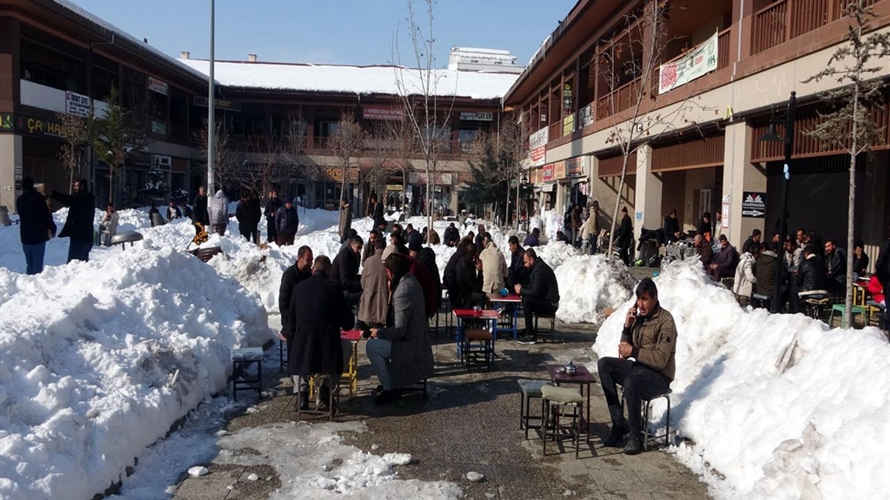 Kentte geçen hafta etkili olan yoğun kar yağışı, hayatı olumsuz etkiledi. Erciş ilçe merkezinde de kar kalınlığı yer yer 80 santimetreye ulaşırken, yüksek kesimlerde 2 metreyi aştı. Kar yağışı kimi vatandaşlar için çileye dönüşürken; ilçede esnaf, kar kütlelerinin arasında masa kurup, çay içerek sohbet etti. İlçede 20 yıldır çay ocağı işlettiğini belirten Fırat Kandemir, "İlçemizde yoğun bir kar yağışı oldu. Kar kalınlığı merkezde yer yer 80 santimetreye kadar ulaştı. Biz de bazı esnaf arkadaşlarla işletmemin önündeki boş alanda masa kurduk, etrafını kar kütleleriyle ördük. Bu ilginç görüntü çevredeki insanların da dikkatini çekti. Çalışmamızdan sonra müşteri sayımız arttı" dedi.