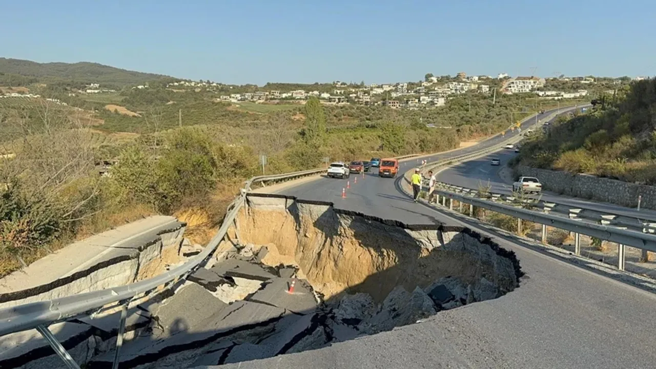 Kuşadası-Söke kara yolu Yaylaköy mevkisi Kuşadası istikametinde yolda çökme meydana geldi.
