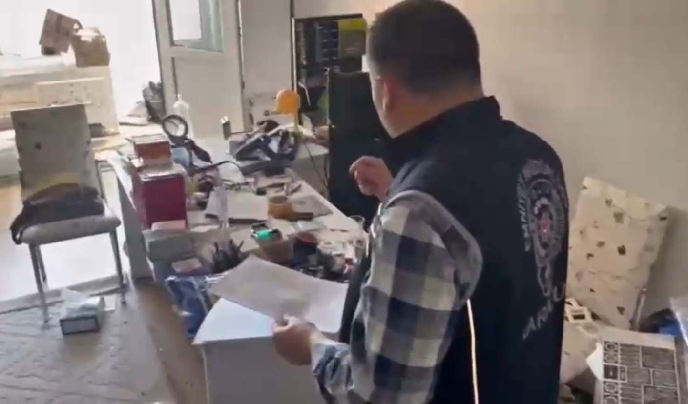 Şüphelinin evinde yapılan 2 ayrı aramada; kalem, priz, USB bellek, wi-fi adaptörü, masa saati, avize duyu, dijital saat, araba anahtarı, spot lamba gibi onlarca farklı objeye gizlenmiş kamera ve ses kayıt cihazlarının yanı sıra yüzlerce elektronik parça, kamera devreleri ve bataryalar bulundu.