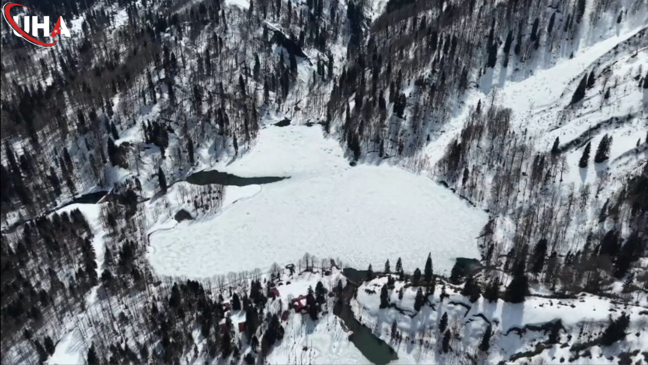 Borçka ilçesine 27 kilometre mesafede, Karçal Dağları’nın kuzeybatısında deniz seviyesinden 1550 metre yükseklikte yer alan Karagöl, eşsiz doğasıyla ziyaretçilerini ağırlıyor. Bozulmamış doğası, yürüyüş parkurları ve kamp alanlarıyla doğa tutkunlarının vazgeçilmez adreslerinden olan Karagöl’de, etkili kar yağışı sonrası özellikle geceleri hava sıcaklığının sıfırın altına düşmesiyle göl yüzeyi kısmen buz tuttu. Donan göl yüzeyi ve ormanları kaplayan kar örtüsüyle seyrine doyumsuz manzaralar oluştu. Buz tutan gölü ziyaret edenler manzaranın keyfini çıkardı. Göl ve çevresi dronla görüntülendi.