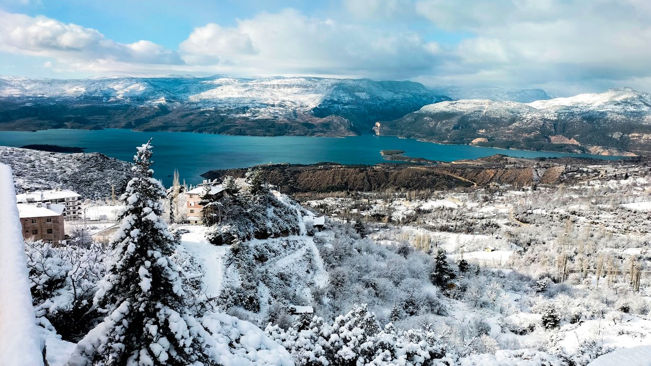 Ermenek ilçesinde gece boyu aralıklarla yağan kar, kenti beyaza bürüdü. Ağaçlar ve meyve bahçeleri karla kaplandı. Toros Dağları eteklerinde turkuaz rengi ve 218 metre yüksekliğiyle Ermenek Baraj Gölü, karla birlikte güzel görüntüler oluşturdu. Meteoroloji verilerine göre bölgede bu gece ve yarın da kar geçişleri bekleniyor.