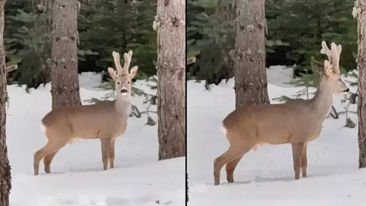 Gerede ilçesinin yüksek kesimlerindeki karla kaplı ormanda karaca görüntülendi. Ormanda gezen karacayı fark eden kişi, o anları cep telefonu ile kaydetti. Bir süre kendisini görüntüleyen kişiye bakan karaca daha sonra ormanın iç kısımlarına girerek gözden kayboldu.