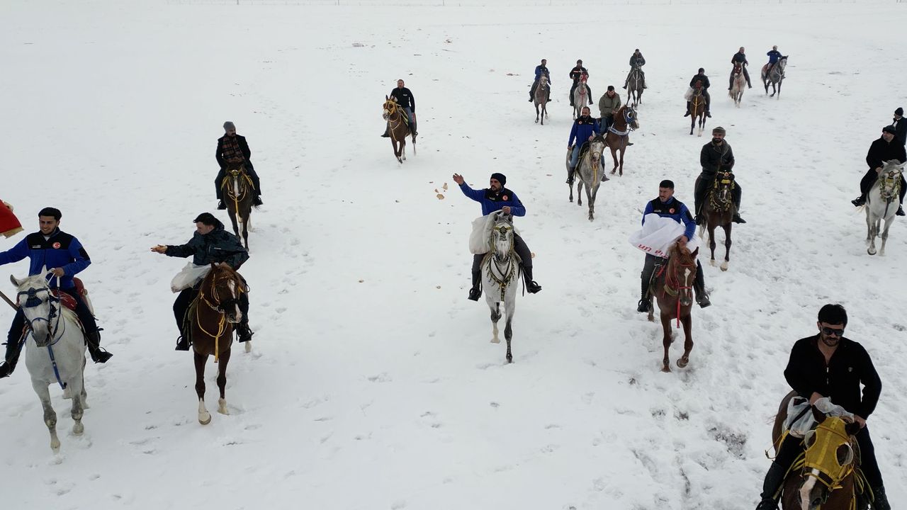 Erzurum son yılların en sert ve yağışlı kışını yaşarken, kar kalınlığının 50 santimetreye kadar çıktığı arazide yiyecek bulamayan yaban hayvanları kırsal mahallelere kadar indi. Yaban hayvanlarının insanlara tehdit oluşturmaması için araziye yiyecek bırakmak amacıyla Aziziye ilçesinde 20 ciritçi kilolarca tavuk eti, ekmek ve yem topladı. Aziziye Belediye Başkanı Emrullah Akpunar’ın da destek verdiği ciritçiler, sabahın erken saatlerinde atlarıyla yola çıktı. Başkan Akpunar’ın da atıyla katıldığı grup, sıfırın altında 15 derecede karla kaplı arazide uygun buldukları noktalara yiyecek bıraktı.