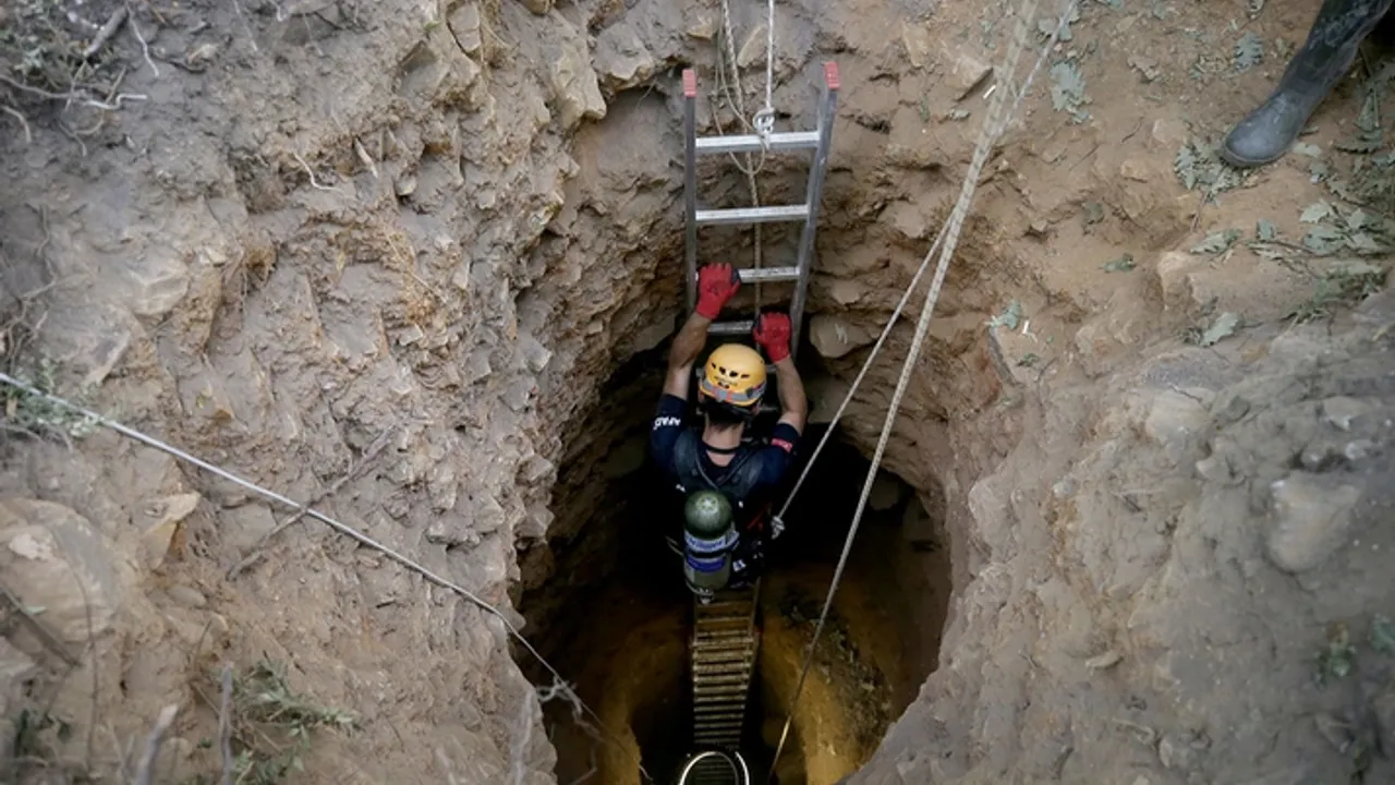 Bölgeye ulaşan ekipler, 1,5 metre genişliğinde 13 metre derinliğinde kazılan çukurda mahsur kalan 3 kişinin kurtarılması için çalışma başlattı.