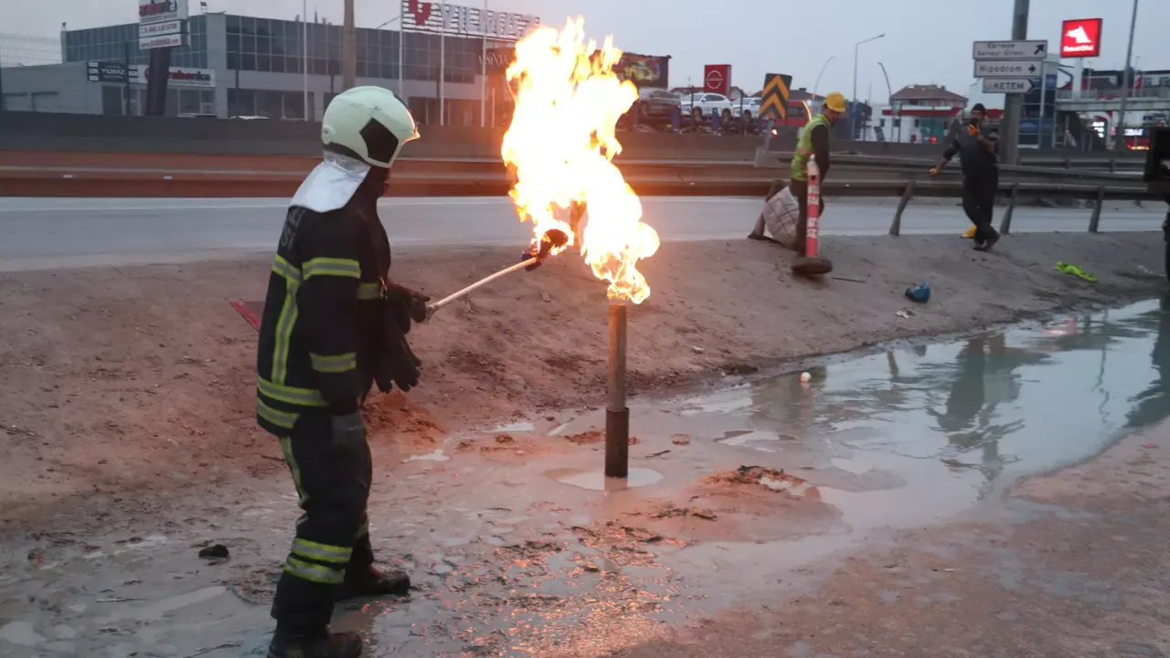 Ekipler, kontrolsüz yayılıp herhangi bir patlamaya neden olmaması için gazı tutuşturdu.