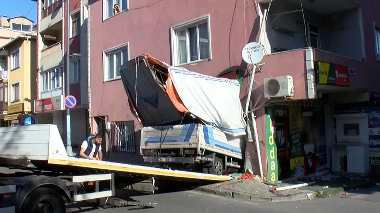 Direksiyon hakimiyetini yitiren sürücü, kamyoneti durduramayarak yol üzerindeki bir iş yerinin içine girdi. Olay sırasında dükkanın kapalı olması, felaketin önüne geçti.