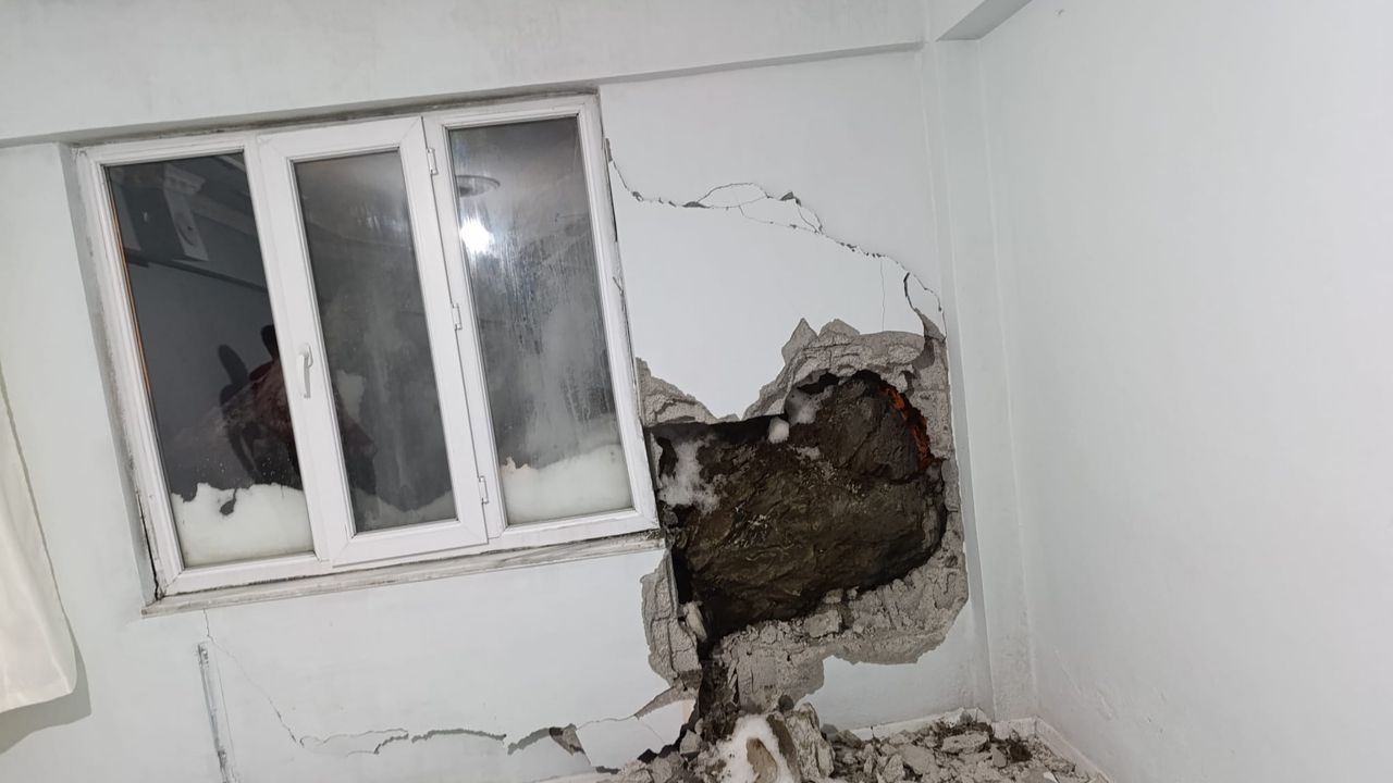Olay, dün saat 21.00 sıralarında Karşıyaka Mahallesi’nde meydana geldi. Dağdan kopan kaya barçaları, yuvarlanıp Yusuf Dayan’a ait eve çarptı. Evin arka duvarında büyük hasar oluşurken, kaya parçalarından biri yatak odasının duvarını deldi. Bu sırada evin salonunda oturanlar ise büyük korku ve panik yaşayarak kendilerini dışarı attı. İhbar üzerine adrese AFAD, polis, itfaiye ve sağlık ekipleri sevk edildi. Ekipler, yeni kaya düşme riskine karşı evi tahliye edip, çevresine güvenlik şeridi çekti. AFAD ve itfaiye ekipleri evde hasar tespit çalışması yaptı.