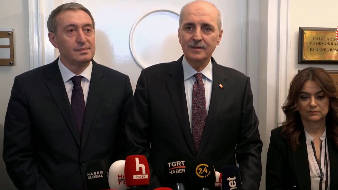 TBMM Başkanı Numan Kurtulmuş, DEM Parti Eş Genel Başkanları Tülay Hatimoğulları ve Tuncer Bakırhan'ı Meclis'teki makamında ziyaret etti. Hatimoğulları ve Bakırhan, Kurtulmuş'u kapıda karşıladı. Basına kapalı gerçekleşen görüşme, yaklaşık 35 dakika sürdü. Görüşmenin ardından Numan Kurtulmuş ve Tuncer Bakırhan açıklamalarda bulundu.