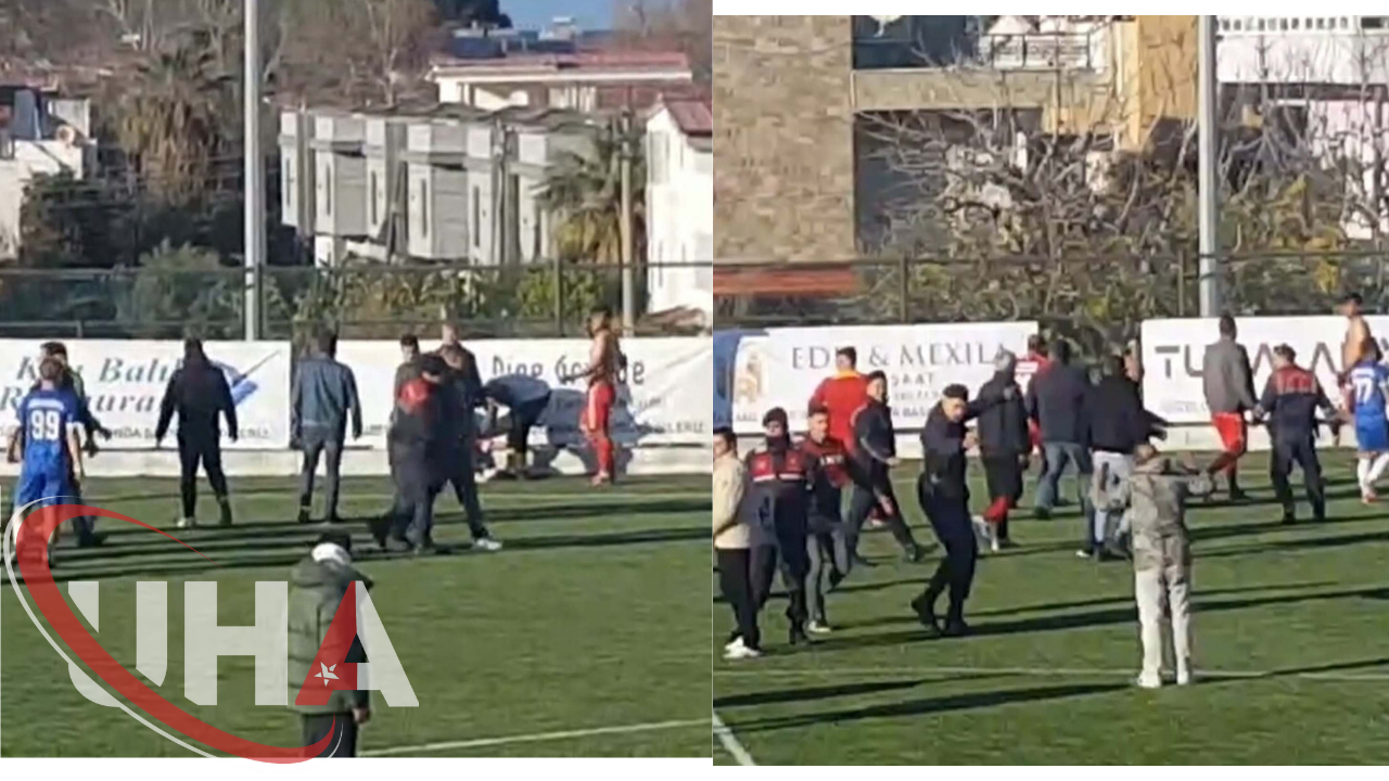 Süper Amatör Lig’de Söke ilçesinin Bağarasıspor takımı, Kuşadası’nın Güzelçamlıspor ekibinin konuğu oldu. Üç kırmızı kartın çıktığı karşılaşmayı Bağasıspor 3-2 kazandı. Maçın bitiş düdüğünün ardından iki takım oyuncuları arasında çıkan tartışma kavgaya dönüştü. Bazı taraftarların da sahaya girerek karıştığı kavgada, futbolcuları jandarma ekipleri güçlükle ayırdı. Yaşanan kavga, maçı izlemeye gelen tribündeki taraftarlar tarafından da cep telefonu kamerasıyla kaydedildi.