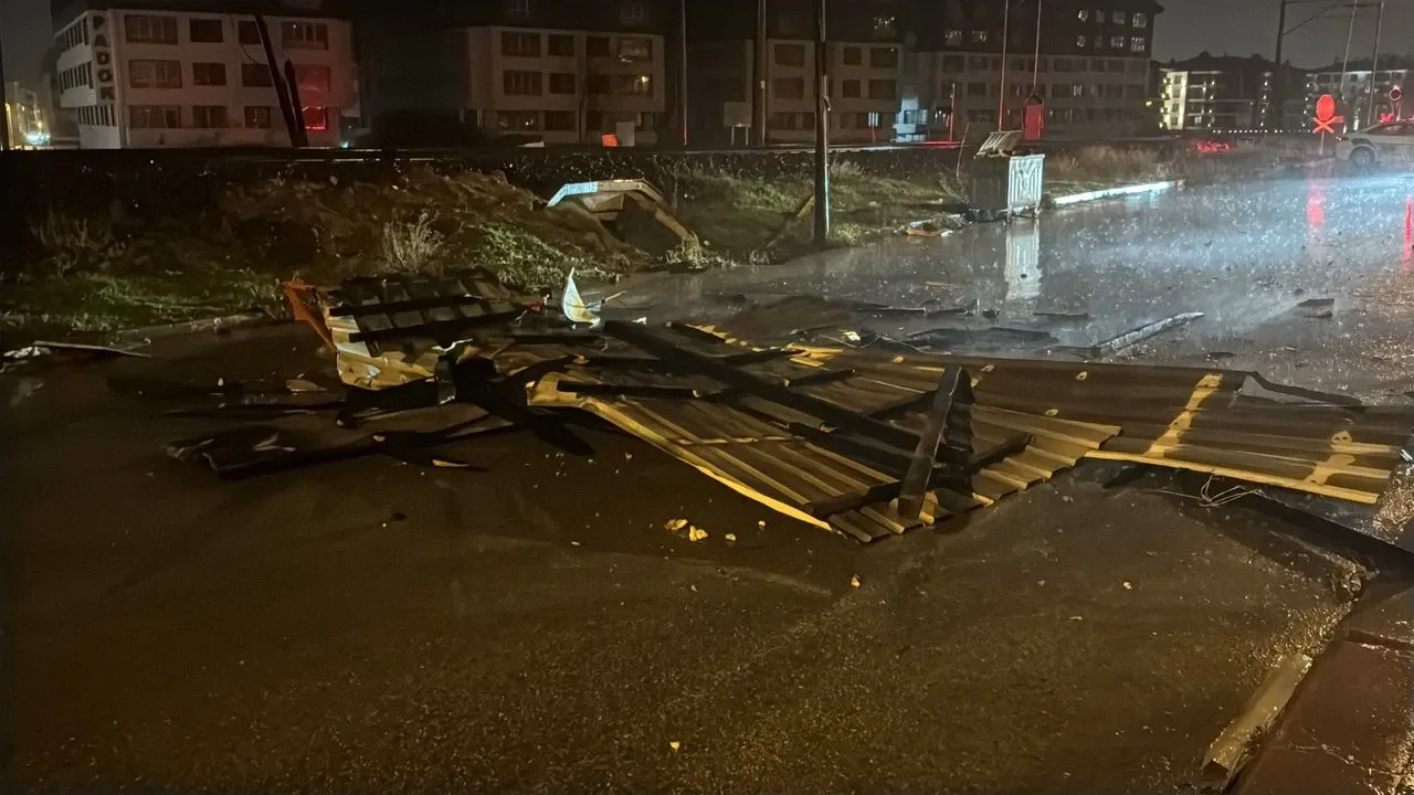 Kentte gece yarısından sonra etkili olan kuvvetli rüzgar yaşamı olumsuz etkiledi. Rüzgar nedeniyle Bahçelievler Mahallesi Çeçen Sokak’ta bir binanın çatısı uçtu. Yola düşen çatı malzemeleri nedeniyle yol trafiğe kapandı. Ahmet Derin Caddesi’nde ise bir ağaç yola devrildi. Düşen çatı ve devrilen ağaç nedeniyle kapanan yollar, ekiplerin çalışmasının ardından şekilde yeniden trafiğe açıldı. (DHA)