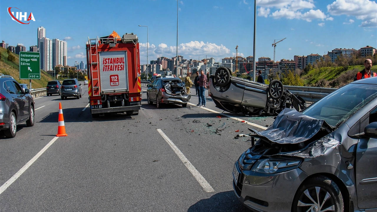Kaza, saat 14.00 sıralarında Kuzey Marmara Otoyolu Cebeci Tüneli çıkışı, Eyüpsultan 5. Levent Mevkii'nde meydana geldi. İddiaya göre, oluşan trafik yoğunluğunu fark edemeyen K.P. idaresindeki 34 FAY 529 plakalı cip 2 araca çarptı. Bunun üzerine çarpmanın etkisiyle sürüklenen cip önce takla attı, ardından 34 GSS 838 plakalı otomobile çarparak durabildi. Çevredekilerin ihbarı üzerine olay yerine itfaiye, acil sağlık ve polis ekipleri geldi. Sağlık ekiplerinin kontrollerinde kazada yaralandığı belirlenen 34 FAY 529 plakalı cipin sürücüsü K.P. ile eşi K.P. olay yerindeki ilk müdahalenin ardından ambulansla hastaneye kaldırıldı. Polis ekipleri ise yolda güvenlik önlemi aldı. Kaza nedeniyle kullanılamaz hale gelen 5 araç, çekiciyle olay yerinden kaldırıldı.