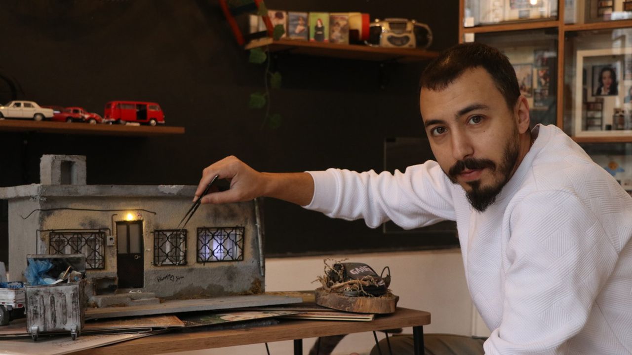 Kentte yaşayan Çağatay Postacı, pandemi döneminde üniversite öğrenimi gördüğü sırada ‘diorama’ sanatına ilgi duydu. Bu alanda kendini geliştiren Postacı, çeşitli malzemelere şekil vererek ev, araç, çaydanlık, soba, radyo, gibi minyatürler yapmaya başladı. Zamanla ürünlerini sanal medyada paylaşan Postacı, halktan gelen istek üzerine kendi iş yerini açıp, insanların geçmişte yaşadıkları ev ve çeşitli hatıralarını ‘diorama’ sanatıyla yaşatmaya başladı. Postacı, süreci anlatarak, “Hayatımıza pandemi ile girdi aslında. Babamla bir uğraş amacıyla başladım bu işe. Kendisi sıkılıp bırakınca ben devam ettirdim. Kendim başladım. Daha sonrasında sosyal medyalarda yaptığım ürünleri paylaşınca, talep gördü. Şu an kişiye özel çerçeveler üretiyoruz. Geçmişte insanların anılarının geçtiği maket evler yapıyoruz” diye konuştu.
