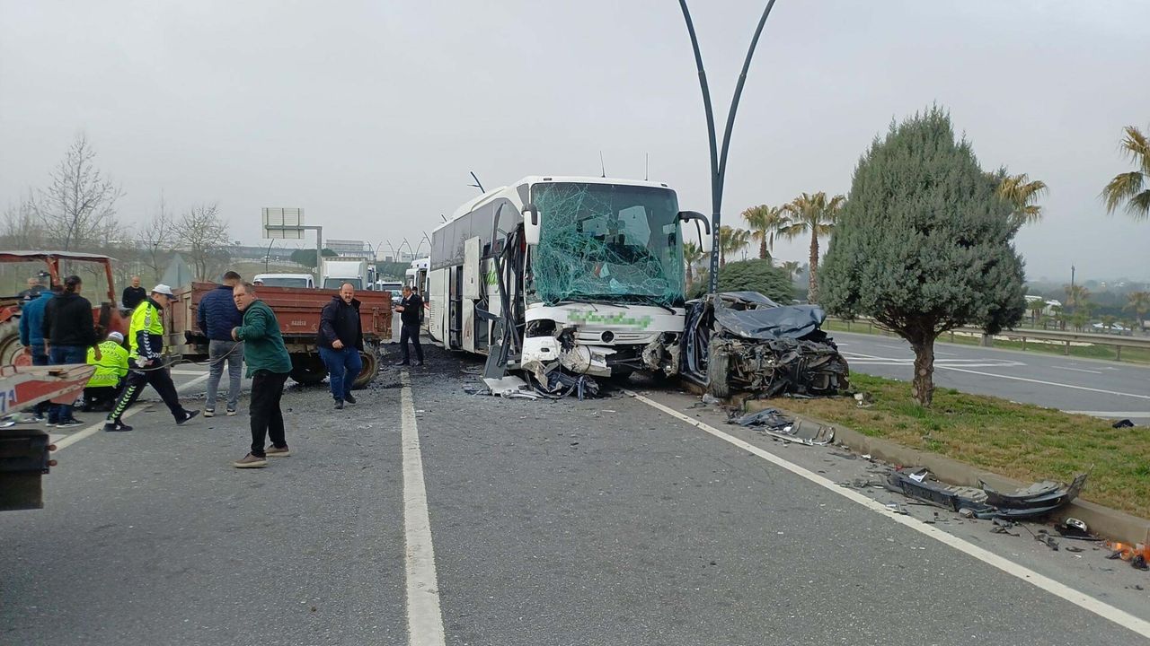 Kaza, saat 11.30 sıralarında İzmir-Manisa çevre yolu Yunusemre ilçesi kesimindeki Saat Kulesi Kavşağı Menemen Köprüsü girişinde meydana geldi. İzmir'den Manisa'nın Akhisar ilçesi yönüne giden Duran Kocatürk'ün (72) kullandığı 16 AFP 130 plakalı otomobil, sağ şeritteki aynı yöne giden Mevlüt Yurt (48) yönetimindeki 45 ET 318 plakalı asfalt atığı yüklü traktöre çarptı. Çarpmanın etkisiyle savrulan otomobil, sol şeride geçti. Bu sırada gelen İ.E. (52) idaresindeki 10 HF 160 plakalı İzmir-İstanbul seferini yapan yolcu otobüsü, otomobile çarptı. Kazada traktör sürücüsü Mevlüt Yurt, otomobil sürücüsü Duran Kocatürk, yanındaki Nazire Kocatürk (71) otobüste görevli muavinler Enes Bilgili (20) ve Kadir Şerifoğlu (26) yaralandı. Çevredekilerin ihbarıyla kaza yerine çok sayıda ambulans, polis ve itfaiye ekipleri sevk edildi. Yaralılar, araçlardan çıkarılarak, ekipler tarafından hastanelere kaldırıldı. Tedaviye alınan yaralıların durumlarının iyi olduğu bildirildi. Kaza ile ilgili soruşturma başlatıldı.