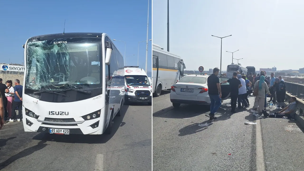 Manisa'nın Turgutlu ilçesinde fabrikalara personel taşıyan iki midibüs ile bir otobüsün çarpıştığı kazada çok sayıda işçi yaralandı.