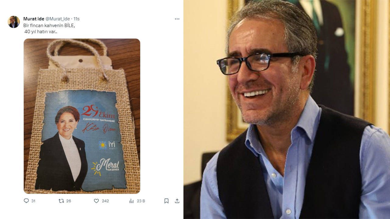 Sosyal medya hesabında, Meral Akşener'in Cumhuriyet Bayramı kutlaması için dağıttığı hediyenin fotoğrafıyla mesaj yayımlayan İde, "Bir fincan kahvenin BİLE, 40 yıl hatırı var..." ifadesini kullandı.