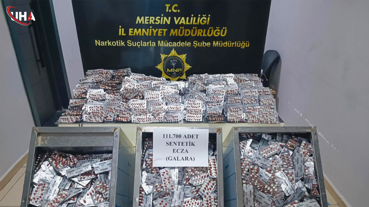 Mersin Cumhuriyet Başsavcılığı koordinesinde İl Emniyet Müdürlüğü Narkotik Suçlarla Mücadele Şube Müdürlüğü ile Kaçakçılık ve Organize Suçlarla Mücadele (KOM) Şube Müdürlüğü ekiplerinin koordineli yürüttüğü saha çalışmalar sonucu merkez Akdeniz ilçesinde faaliyet gösteren bir iş yerine baskın yapıldı. İş yerinde gerçekleştirilen aramada, metal sactan yapılmış 4 koli içerisine gizlenmiş vaziyette 111 bin 700 adet sentetik ecza ele geçirildi.