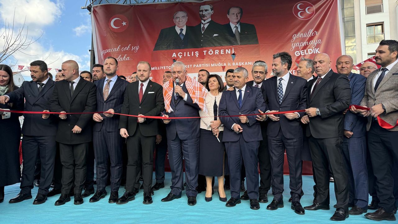 Konuşmaların ardından MHP Muğla İl Başkanlığı'nın yeni hizmet binası, kurdele kesilerek açıldı
