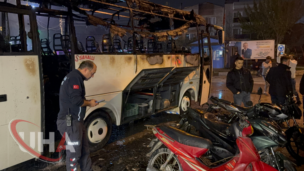 Olay, saat 22.30 sıralarında Mustafa Kemal Mahallesi Kervan Yolu üzerinde meydana geldi. Mahmut Sakallı idaresindeki 45 AUG 068 plakalı servis midibüsü seyir halindeyken, sürücü yanık kokulu ile endişeye kapıldı.