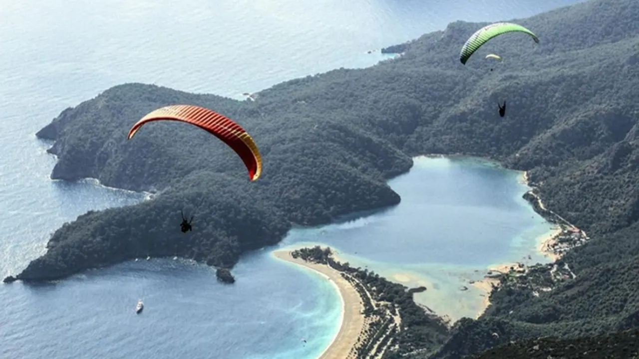 İlçeye tatile gelen Russell Eric Biggs (53) Ölüdeniz Mahallesi'ndeki Babadağ'dan ytamaç paraşütüyle uçuş yaptı.