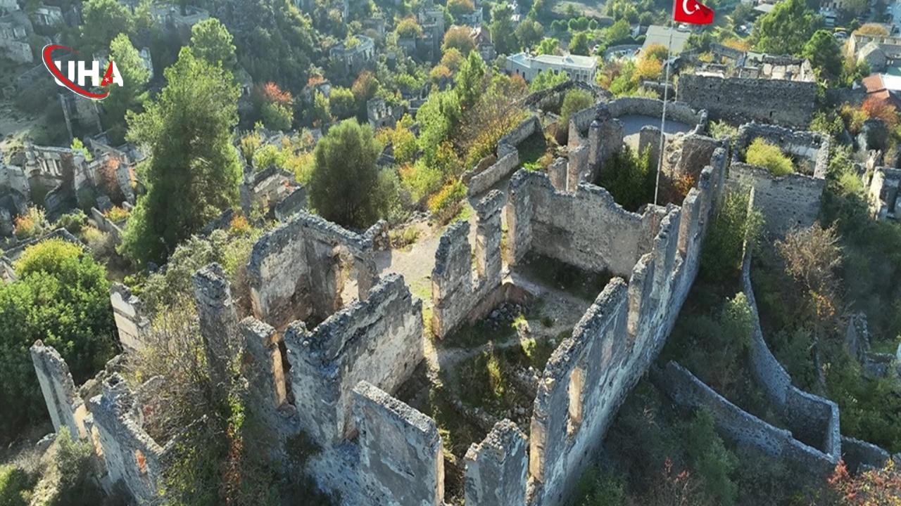 Evliya Çelebi'nin seyahatnamesinde de bahsi geçen ve Rumca ismi 'Levissi' olan Kayaköy'ün, 20’nci yüzyılın başına kadar zengin bir kent olduğu aktarılıyor. Döneminde 6 bin 500 kişilik nüfusa sahip olan köy; kiliseleri, eczane, hastane ve hekimleri, okulları, postanesi ve atölyeleri ile yörenin en büyük sosyal ve ticaret merkezi konumu olarak biliniyor. 69 yıl önce terk edilen ve harabe 500 hanenin bulunduğu Kayaköy, dronla görüntülendi. Her biri 50 metrekare büyüklüğünde, iki katlı ve birbirlerinin manzarasını kapatmayacak şekilde inşa edilen koruma altındaki köye, ziyaretçiler bilet alarak girip terk edilmiş alanları gezebiliyor.