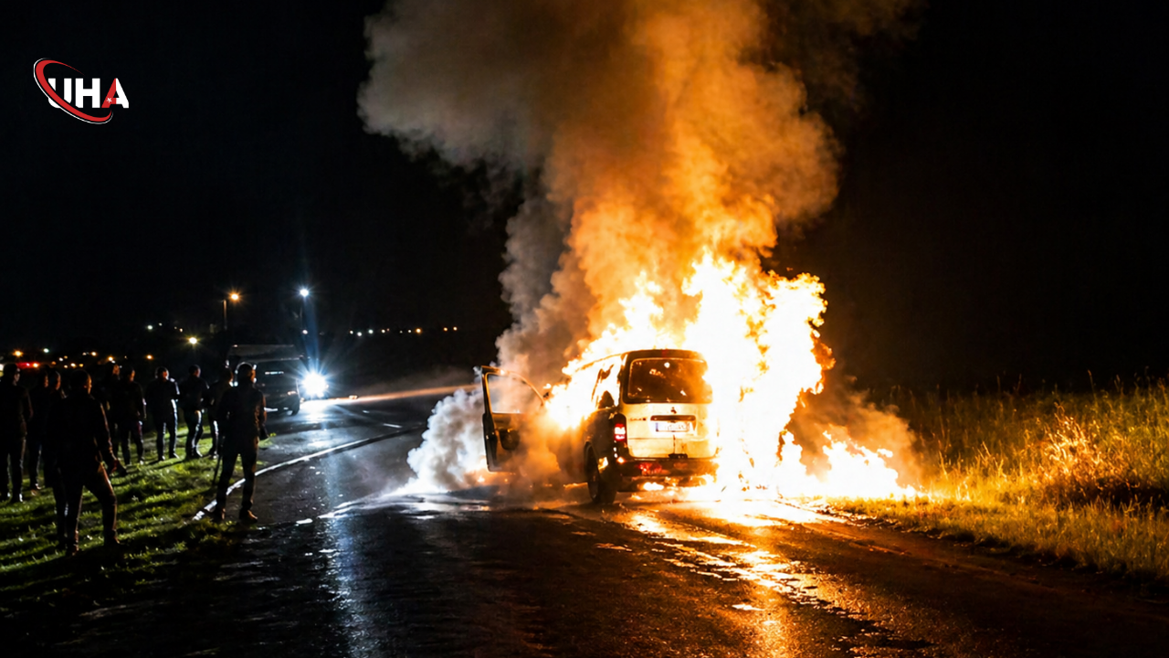 Olay, merkeze yaklaşık 35 kilometre uzaklıktaki Aydıngün Köyü yakınlarında meydana geldi. Köyden kent merkezine seyreden otomobilde, bilinmeyen bir nedenle yangın çıktı. Sürücü, durumu fark edip, aracı yol kenarına park etti. Otomobildeki 5 kişi kendilerini son anda dışarı atarken, araç kısa sürede alev topuna döndü. İhbarla bölgeye Serinova Belediyesi itfaiye ekipleri sevk edildi. Yangın ekiplerin müdahalesi ile söndürülürken, otomobil kullanılamaz hale geldi.