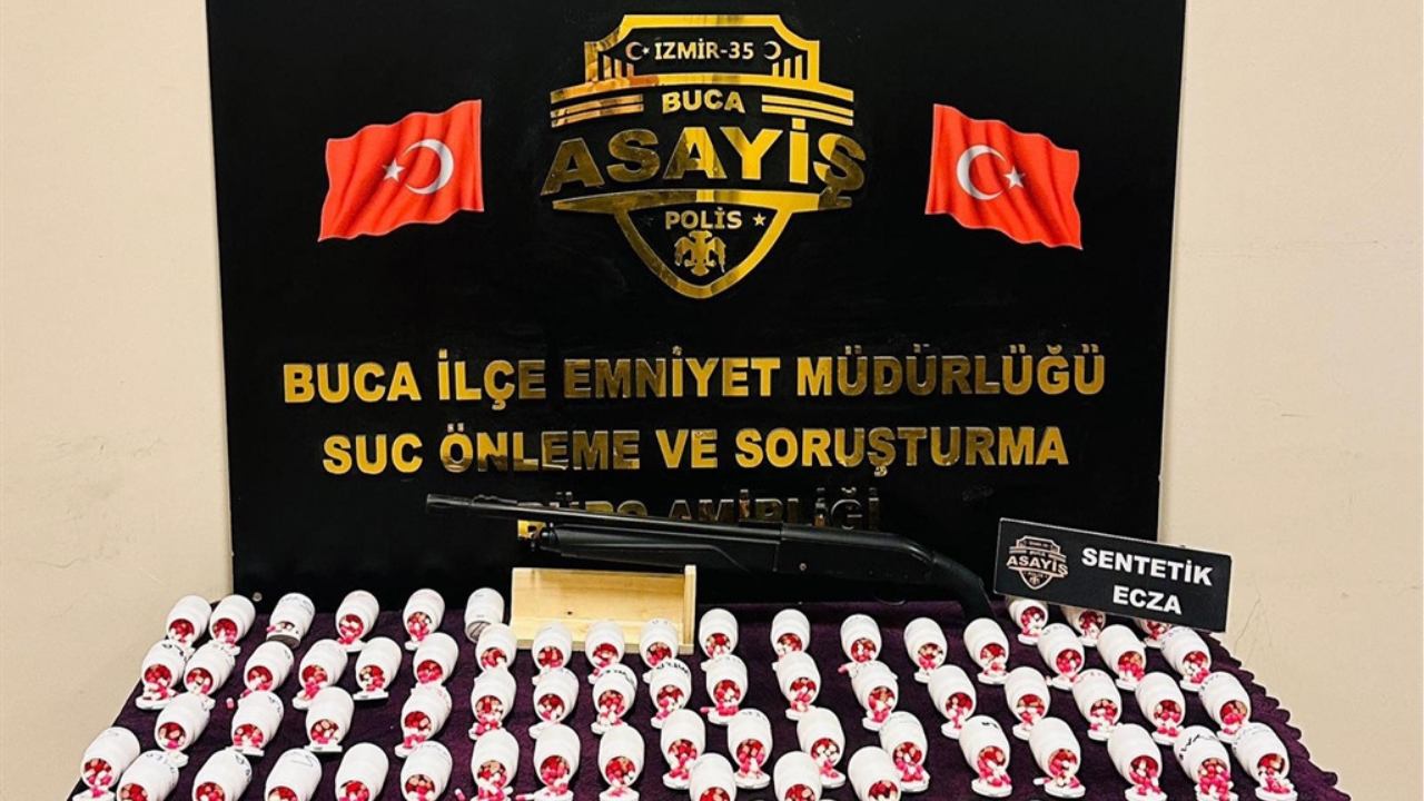 Buca İlçe Emniyet Müdürlüğü ekipleri tarafından uyuşturucu satan ve üretenlere yönelik çalışma yaptı. Göksu Mahallesi’nde belirlenen bir eve önceki gün yapılan operasyonda 4 bin 984 sentetik hap ile 1 adet pompalı tüfek ele geçirildi. Operasyonda C.A., H.A. ve F.Ç. yakalandı. Emniyetteki işlemleri tamamlanan şüpheliler adliyeye sevk edildi.